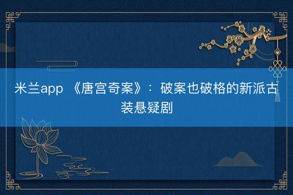 文|13 2026年初,低迷了一段时间的古装剧又支棱起来了。 近期开播的古装剧《唐宫奇案之青雾风鸣》(以下简称《唐宫奇案》),是少见的女性视角悬疑探案剧,该剧由优酷出品,大麦娱乐、盛阁影视联合出品,孟扬、祝信编剧,尹涛执导,白鹿、王星越领衔主演,改编自森林鹿的小说《唐宫奇案之血玉韘》,讲述了身负家族惨案的福昌县主李佩仪,以女官身份入职内谒...