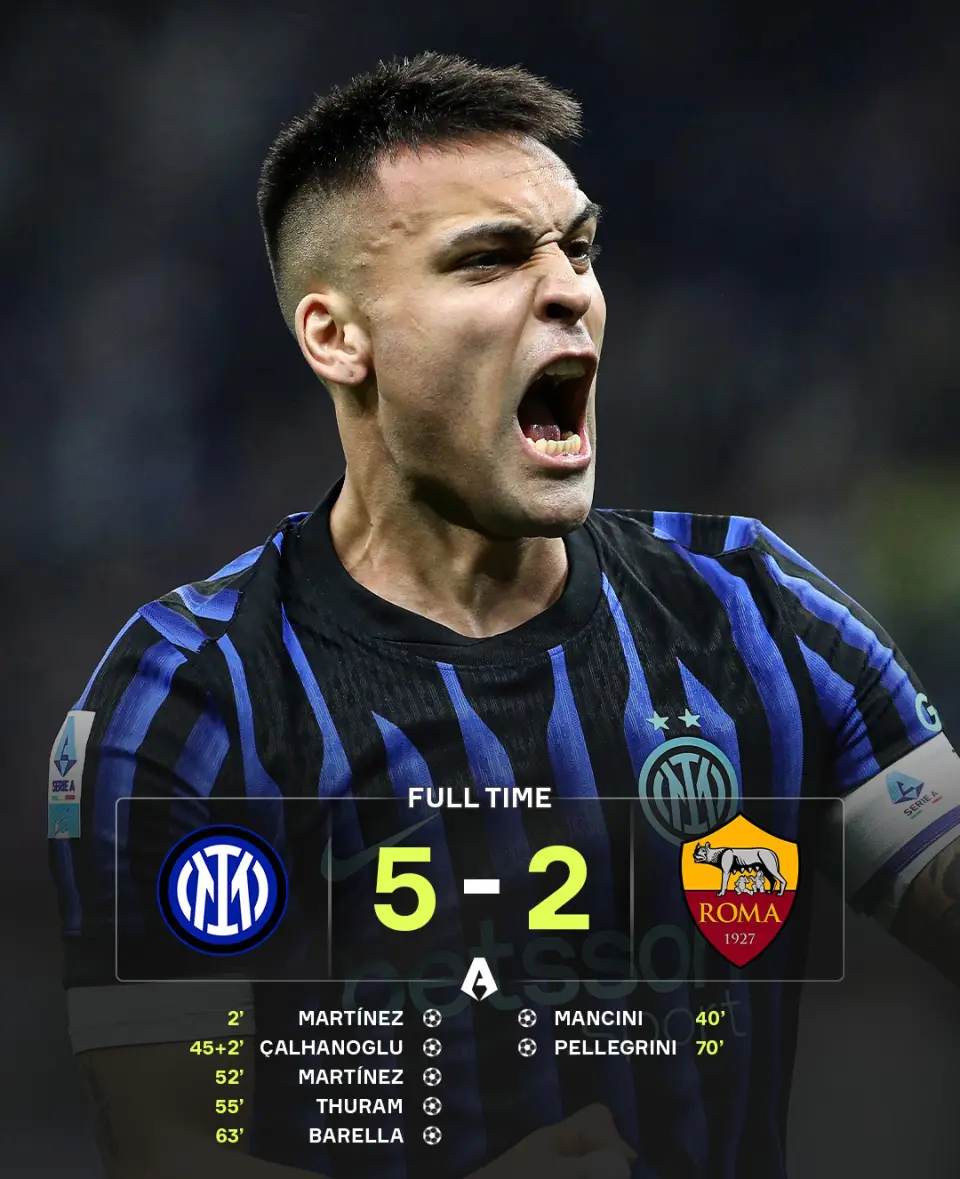 就顾惜大利足球还千里浸在相连3届无缘寰球杯的纷乱暗影之中时,意甲依然重燃战火,第31轮一场焦点大战,海外米兰在梅阿查球场5-2横扫罗马,基本宣告争冠悬念依然被闭幕;王人灵1-0小胜副班长比萨,后者基本预定一个左迁限额;博洛尼亚2-1克雷莫内塞,为斩获欧战阅历发起临了冲击,这今夜事后,意甲争冠、争四和保级球队三大阵营依然基明了。