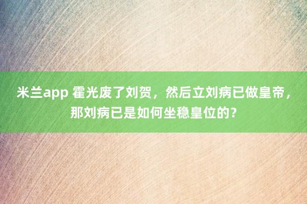 刘病已在霍光的扶持下成为了皇帝,但他的权力却并不牢固。实际上,在他刚刚登基时,霍光几乎随时都有能力废掉他。与之前那个因为过于急躁而失势的昌邑王刘贺不同,刘病已有着更强的政治定力。他并没有像刘贺那样做出过激反应,而是采取了更为稳妥的方式。 {jz:field.toptypename/} 刚上任时,刘病已迅速意识到,自己最大的束缚并非外部威胁...