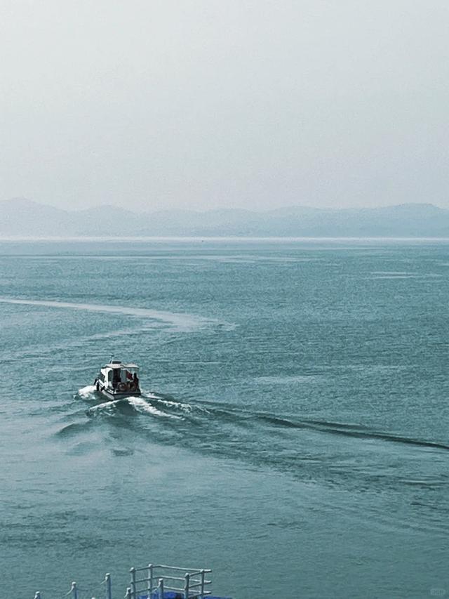 白色的游艇划开翡翠色湖面,跟着螺旋桨的轰鸣,宋岗船埠慢慢笼罩在死后,化作一幅渐行渐远的剪影。