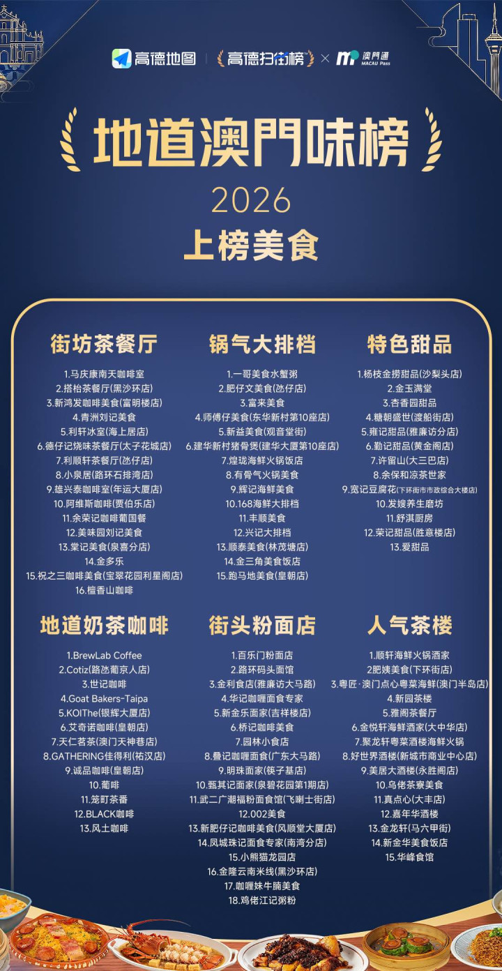 第二,米兰app官网用数据,打造“用脚投票”的确实贞洁脾性榜单。基于亿万东说念主的确实聘用,高德扫街榜已在澳门上线,现在已有985家门店入选,其中96家登上“状元榜”。发布会现场,针对游客“寻味澳门”的需求,高德还尽头发布了"贞洁澳门味"榜,向游客推选具备土产货脾性的澳门好意思食。