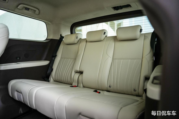 侃哥(身高172cm)坐在后排,517mm的坐垫进深(比同级均值多15%)、365mm的座椅高度(比同级均值多14%)带来实足承托,腿部与头顶均有两拳多空间,高个子乘坐皆没问题,实在作念到了三排平权。更好的是靠背角度可以诊疗,第三排相通可以“葛优躺”,坐垫还支抓240mm前后滑动,可以在载东谈主和载物之间天真诊疗。