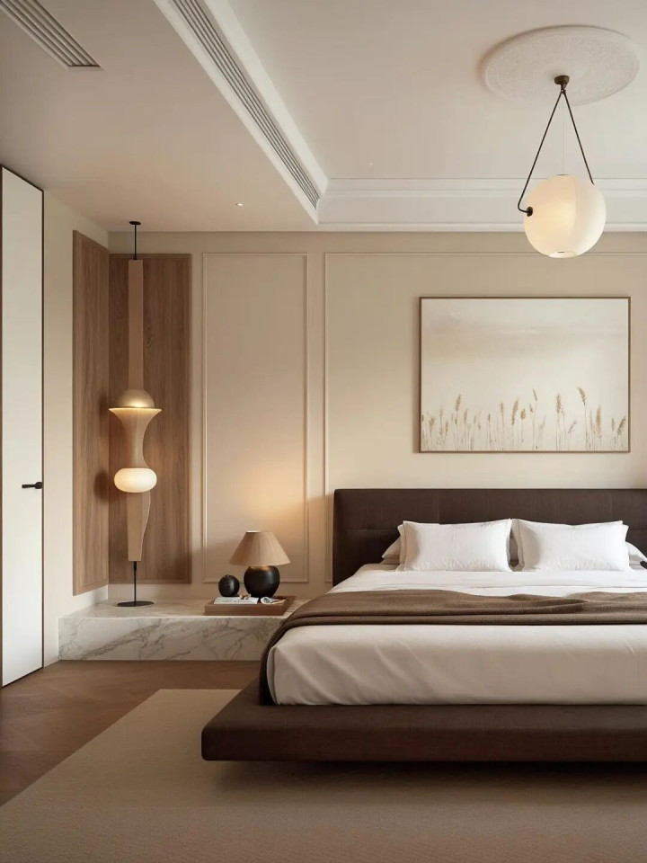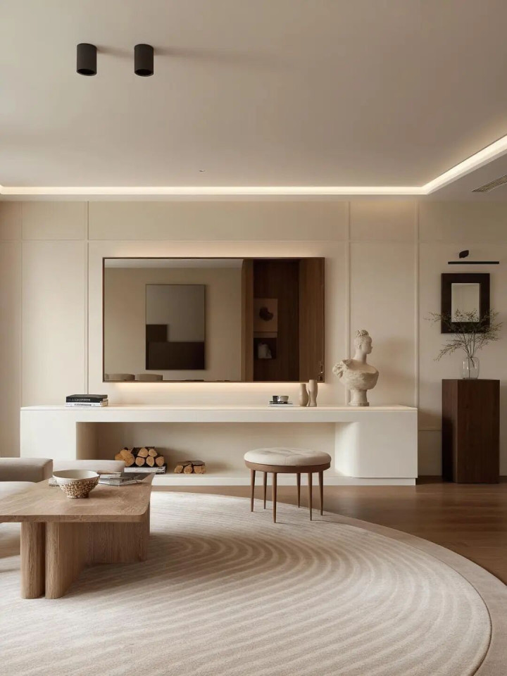 大理石茶几 上松驰摆放册本和碗具,慵懒随心的调调坐窝拿执!布景大窗+绿植点缀,阳光洒进来的时辰,窝在沙发上看电视险些不要太满足!旯旮的白色雕刻和玄色画作,暗暗进步举座艺术感,细节满分!
