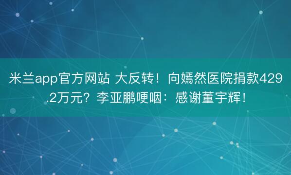 2月4日李亚鹏在嫣然基金年会上提到医院能维持下去,他说明资金来自两部分,一部分是社会上的捐款,另一部分是他直播带货得到的收入,他专门感谢了董宇辉、那英、管虎和梁静这几位朋友,这番话让很多人感到意外,因为之前网上有人批评董宇辉在直播中卖出429万却没有捐款给嫣然医院,现在李亚鹏公开致谢,相当于直接回应了那些指责。 那429.2万这个数字,其...