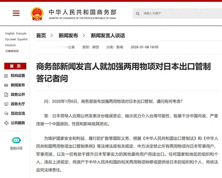 这是中国自1月6日通知强化军民两用物项出口管理以来,初度点名日本企业。商务部的解释卓绝明确:此举旨在制止日本再军事化的企图,完全梗直、合理、正当。