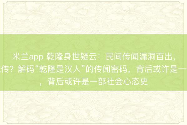 如果要评选清朝历史上的第一皇家八卦,“乾隆是海宁陈阁老的儿子”会以绝对高票当选。 这则传闻的流传范围相当大,金庸的武侠小说《书剑恩仇录》都拿这则传闻当核心背景,写得活灵活现。 这样的八卦传闻,在《清实录》、《玉牒》这些正经档案中,当然是找不出任何证据的。 那么,这个漏洞百出却又生命力极强的故事,到底是怎么被“创作”出来的? {jz:fie...