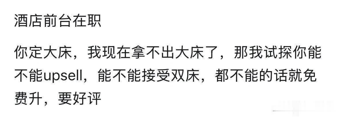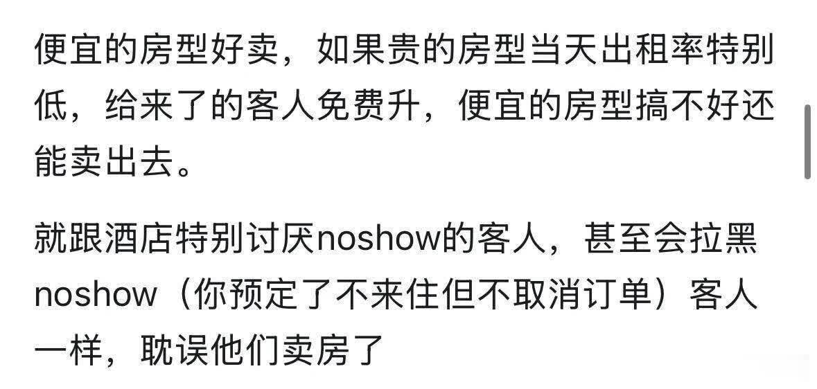 思卖廉价房型皆备不错开超售。这个一般等于出租率低,高端房型空白给宾客免升还能高概率换满评。