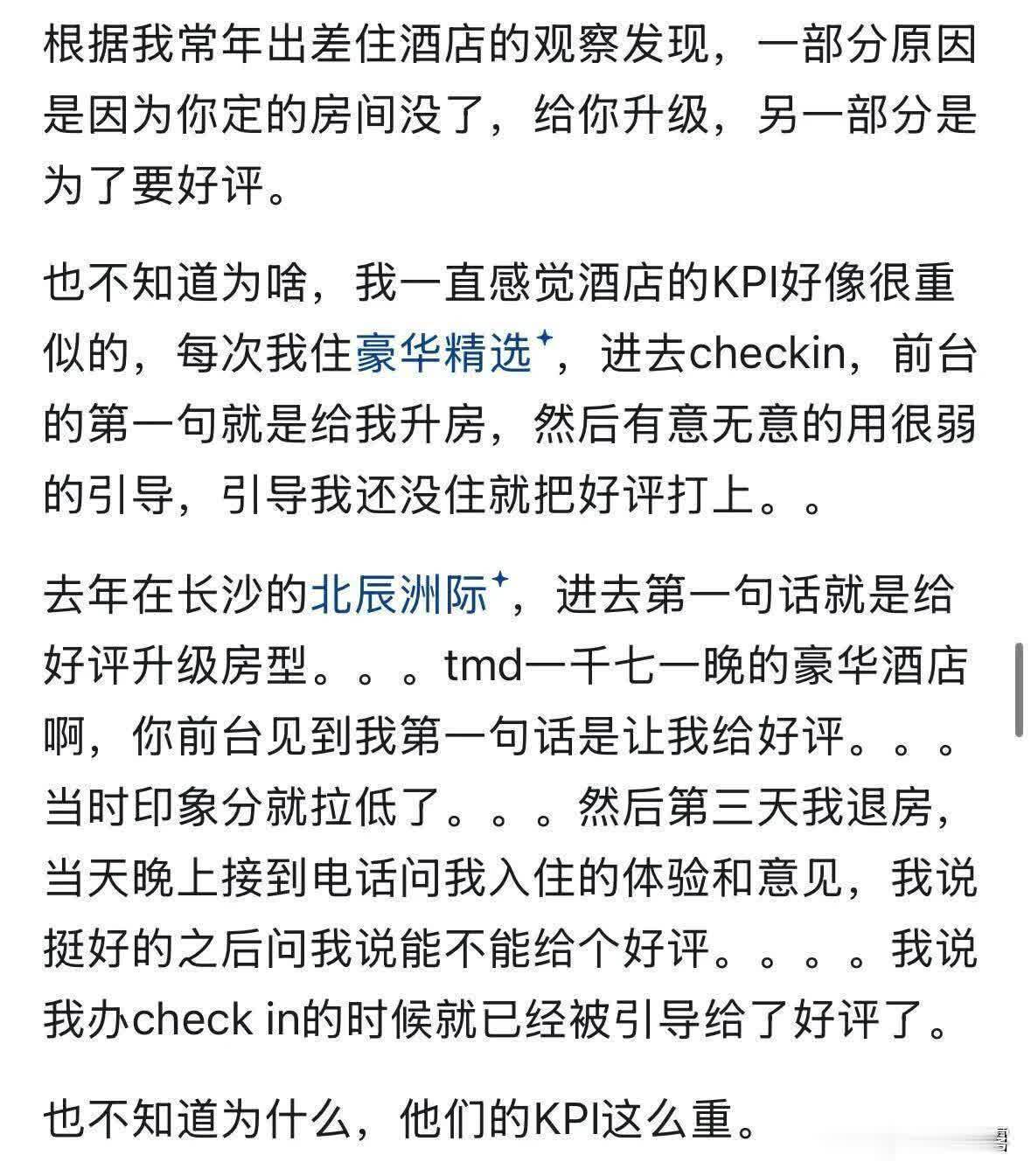 星级酒店的溢价都是在行状上的,假定你订的100元宾馆,雇主接到投诉也就本着贬诽谤题的所在去的,关联词星级酒店不是的,他们是贬诽谤题+给你作念情绪开拓,让你莫得因为问题而沾上恶意扉。