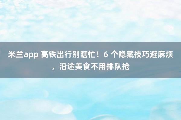 亲爱的宝子们!大家好,我是开心! {jz:field.toptypename/} 作为一个走到哪里都想解锁当地美食的吃货,高铁出行早已成为我探索风味的重要方式。顺畅的旅途能让品尝美食的心情更愉悦,而那些隐藏在高铁出行中的实用技巧,不仅能帮我们避开不必要的麻烦,还能让沿途美食体验更尽兴。今天就把我多次出行总结的 6 个高铁隐藏技巧分享给大家...
