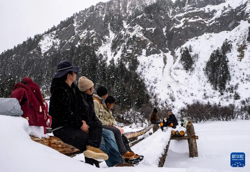 3月21日,当地向导和游东说念主一说念在白普隆沟牧场的木桥上休息。