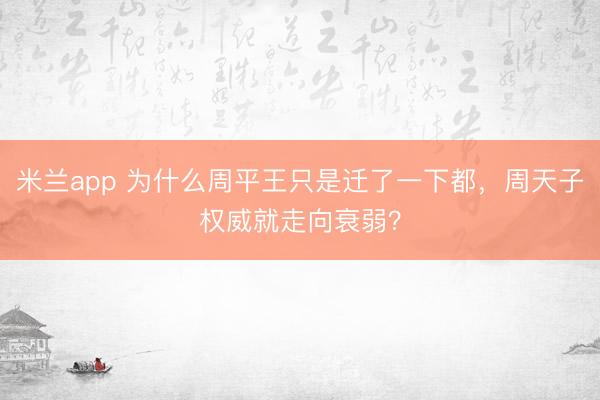 {jz:field.toptypename/} 周平王东迁并非简单换都城,原因有二: 其一,消极应对的必然结果。周平王东迁主要因犬戎威胁,当时除犬戎外,白狄、赤狄、夷人等游牧势力也不断内迁,周朝自身走弱,关中地区分封诸侯少,长期战争消耗军队,镐京被攻破。周平王面对犬戎威胁消极逃避,迁至伊洛地区,虽远离威胁,但军力发展缓慢。周天子在洛邑松懈...
