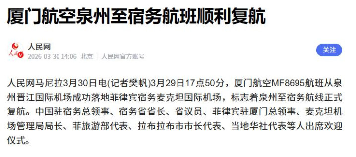 不仅如斯,两国之前停飞的航路也在紧锣密饱读地还原中。比如3月29日,泉州飞宿务的客运航班就复航了。