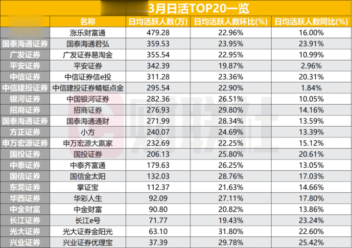 与月活数据的讲理回升比拟,券商APP的日均活跃用户数在3月迎来爆发式增长,环比增速无数进步20%,头部款式则保持平静。