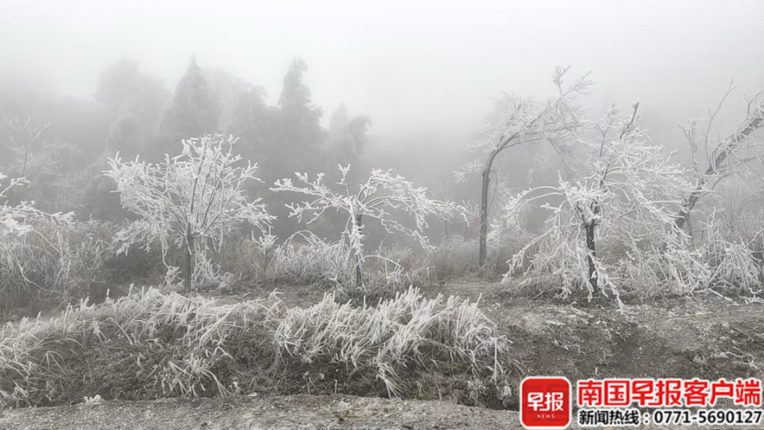 21日7时南宁大明山龙亭景点雾凇实时情况。