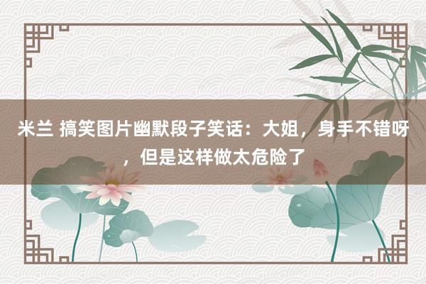 标题:搞笑图片幽默段子笑话:大姐,身手不错呀,但是这样做太危险了。 在这个充满欢笑的世界里,幽默总是能带给我们无尽的欢乐。今天,我要分享一个让人忍俊不禁的搞笑图片和段子,让我们一起来感受这份轻松与快乐吧! 话说在一个阳光明媚的下午,一位大姐在公园里练习太极拳。她的动作流畅而优雅,仿佛一只翩翩起舞的蝴蝶。然而,就在她即将完成一个高难度动作时...